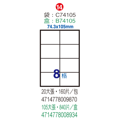 Herwood 鶴屋牌 8格 74x105mm NO.C74105S 粉藍 A4雷射噴墨影印自黏標籤貼紙/電腦標籤 15大張入
