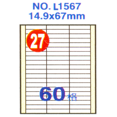 Herwood 鶴屋牌 60格 14.9x67mm NO.L1567 A4雷射噴墨影印自黏標籤貼紙/電腦標籤 20大張入