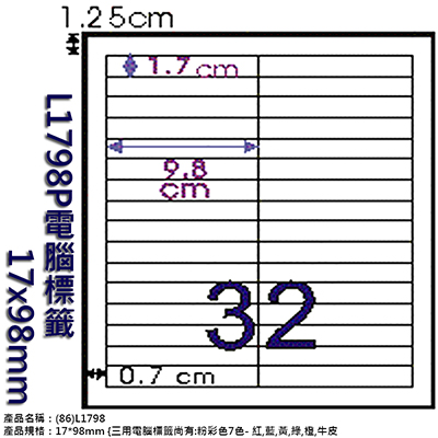Herwood 鶴屋牌 32格 17x98mm NO.L1798 A4雷射噴墨影印自黏標籤貼紙/電腦標籤 20大張入