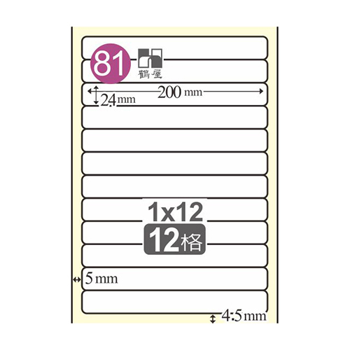 Herwood 鶴屋牌 12格 24x200mm NO.L24200 A4雷射噴墨影印自黏標籤貼紙/電腦標籤 20大張入