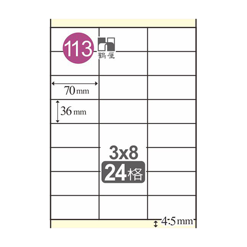 Herwood 鶴屋牌 24格 36x70mm NO.L3670 A4雷射噴墨影印自黏標籤貼紙/電腦標籤 20大張入