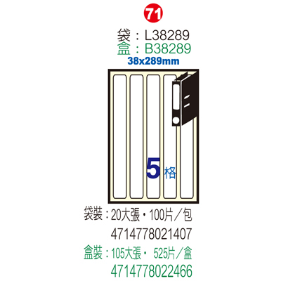 Herwood 鶴屋牌 5格 38x289mm NO.L38289 A4雷射噴墨影印自黏標籤貼紙/電腦標籤 20大張入