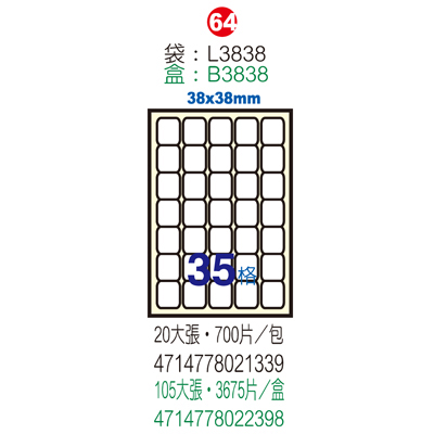 Herwood 鶴屋牌 35格 38x38mm NO.L3838 A4雷射噴墨影印自黏標籤貼紙/電腦標籤 20大張入