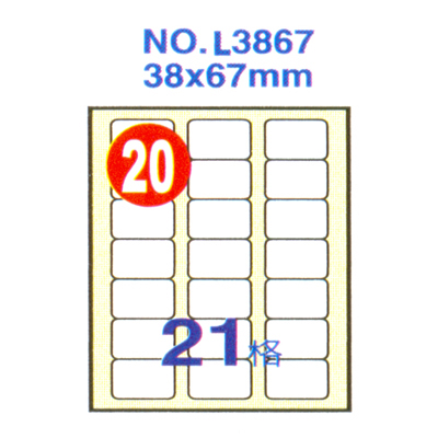 Herwood 鶴屋牌 21格 38x67mm NO.L3867 A4雷射噴墨影印自黏標籤貼紙/電腦標籤 20大張入