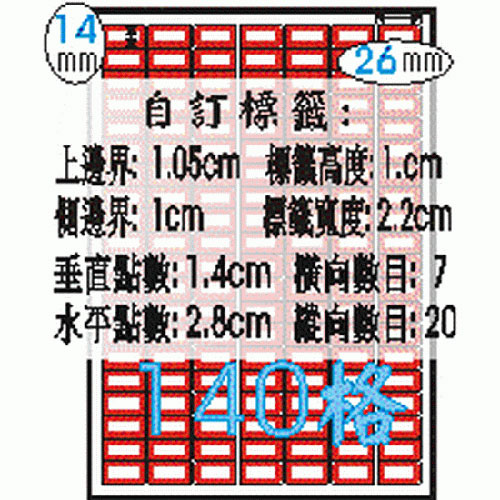 Herwood 鶴屋牌 140格 14x26mm NO.L4075 紅框 A4雷射噴墨影印自黏標籤貼紙/電腦標籤 15大張入