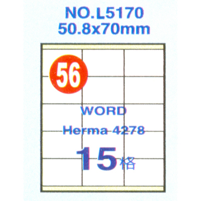 Herwood 鶴屋牌 15格 50.8x70mm NO.L5170 A4雷射噴墨影印自黏標籤貼紙/電腦標籤 20大張入