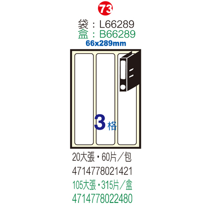 Herwood 鶴屋牌 3格 66x289mm NO.L66289 A4雷射噴墨影印自黏標籤貼紙/電腦標籤 20大張入