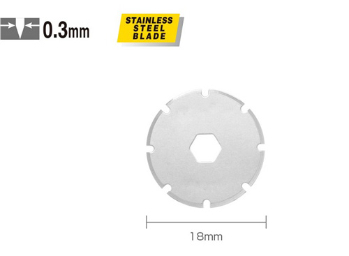 18m/m直徑圓形刀片,使用於OLFA裁布刀RTY-4/G。 2片/包