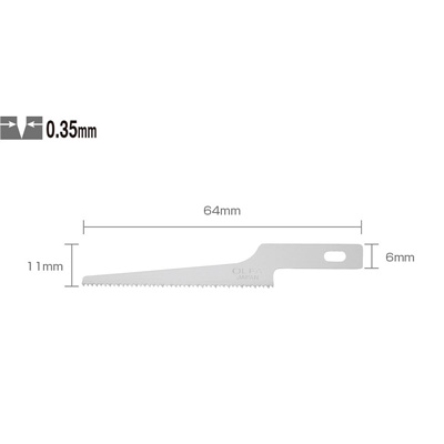 OLFA 專業模型鋸刀HS-1(167B)使用之細刃刀片,3片/包。使用於OLFA AK-4型專業筆刀、HS-1 (167B)型模型鋸刀,5片/包。等同於日文包裝XB167B型(ホビーのこ替刃B 細刃)。材質:SK-95。