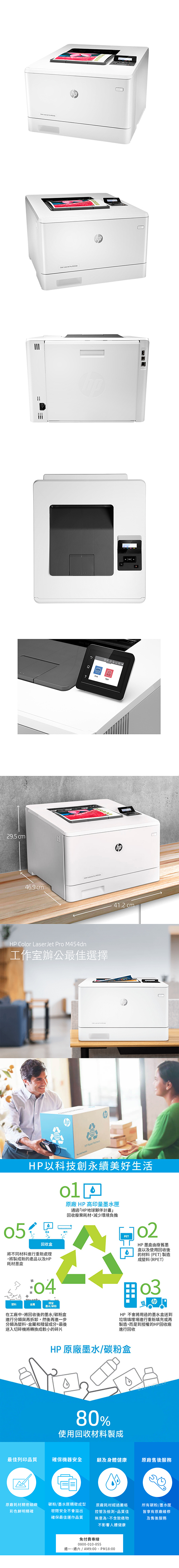 HP Color LaserJet Pro M454dn 彩色雷射印表機更智慧工作造就事業成功。HP Color LaserJet Pro M454 印表機經過精心設計,讓您用一台機器處理多項業務,集中精力,提高工作效率,助您發展業務並在業界保持領先的競爭優勢。