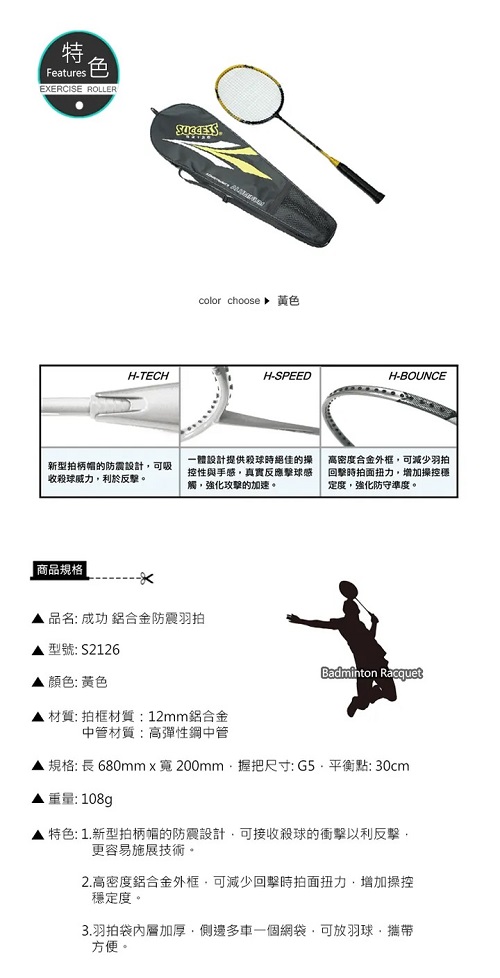 SUCCESS 成功 防震鋁合金羽球拍/羽拍 NO.S2126