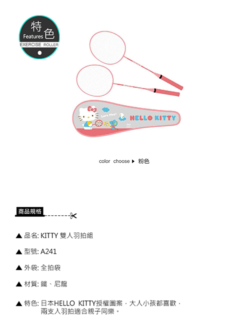 SUCCESS 成功 KITTY雙人羽拍組/羽球拍 NO.A241