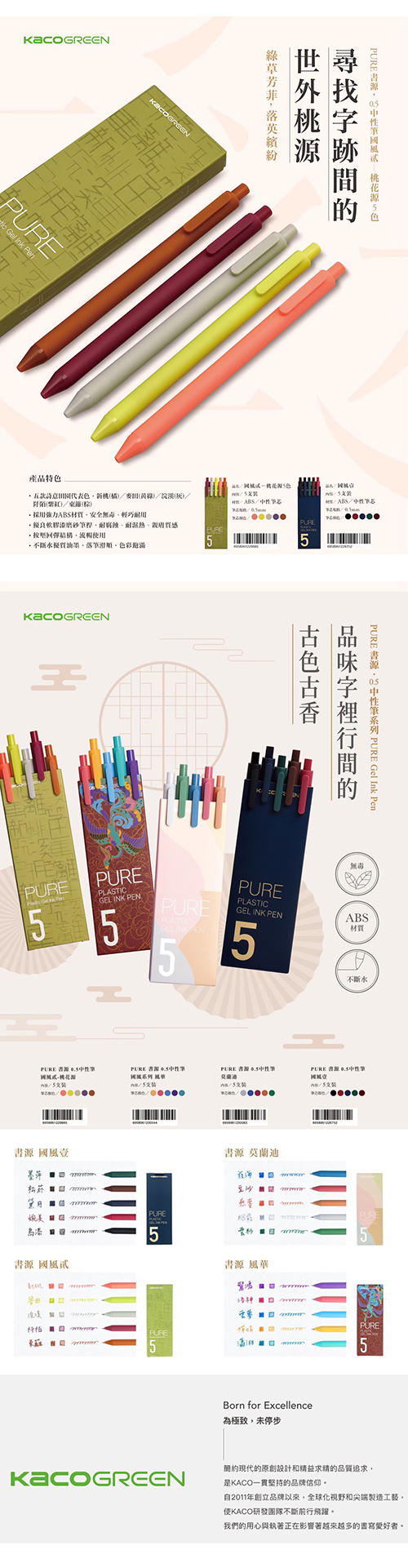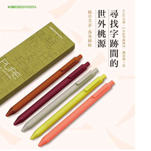 KACOGREEN PURE 書源 國風貳-桃花源(N18177) 0.5中性筆/原子筆 5色組盒裝