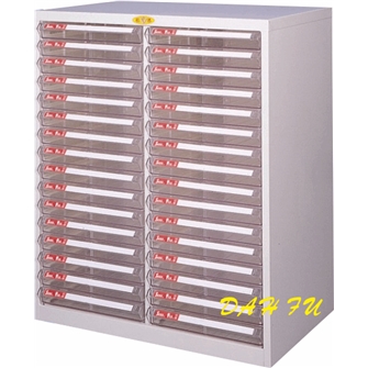 本 體尺寸:寬 740 深 458 高 880 mm .二排寬 x 16格高,共 32格(4.5cm抽x32個) .鋼製外體