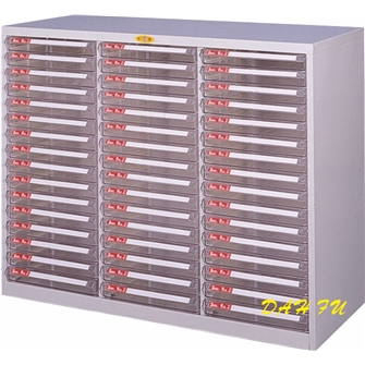 本 體尺寸:寬 1096 深 458 高 880 mm .三排寬 x 16格高,共 48格(4.5cm抽x48個) .鋼製外體