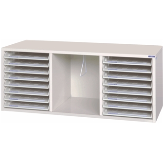 本 體尺寸:寬 931 深 402 高 405 mm .三排寬,左邊:8個抽屜,右邊:8個抽屜共 16格 .中間為開放式(寬度 約 30cm) .鋼製外體