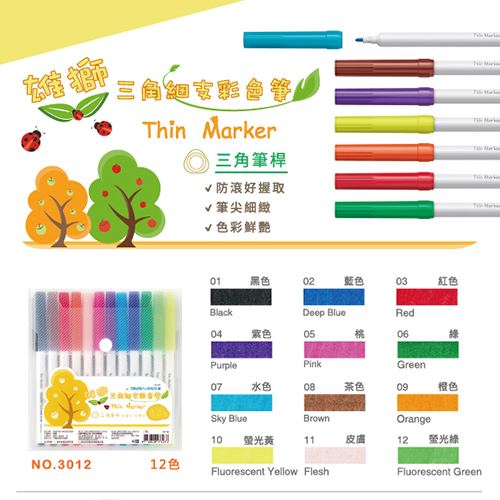 SIMBALION 雄獅 NO.3012 三角細支彩色筆 12色
