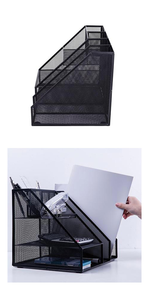 得力Deli多功能拉網金屬辦公收納盒/W79075/黑/320x265x270mm