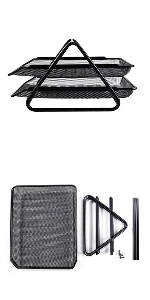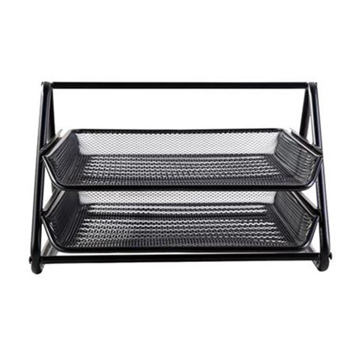得力Deli二層拉網金屬公文架/W9183/黑/350x274x185mm