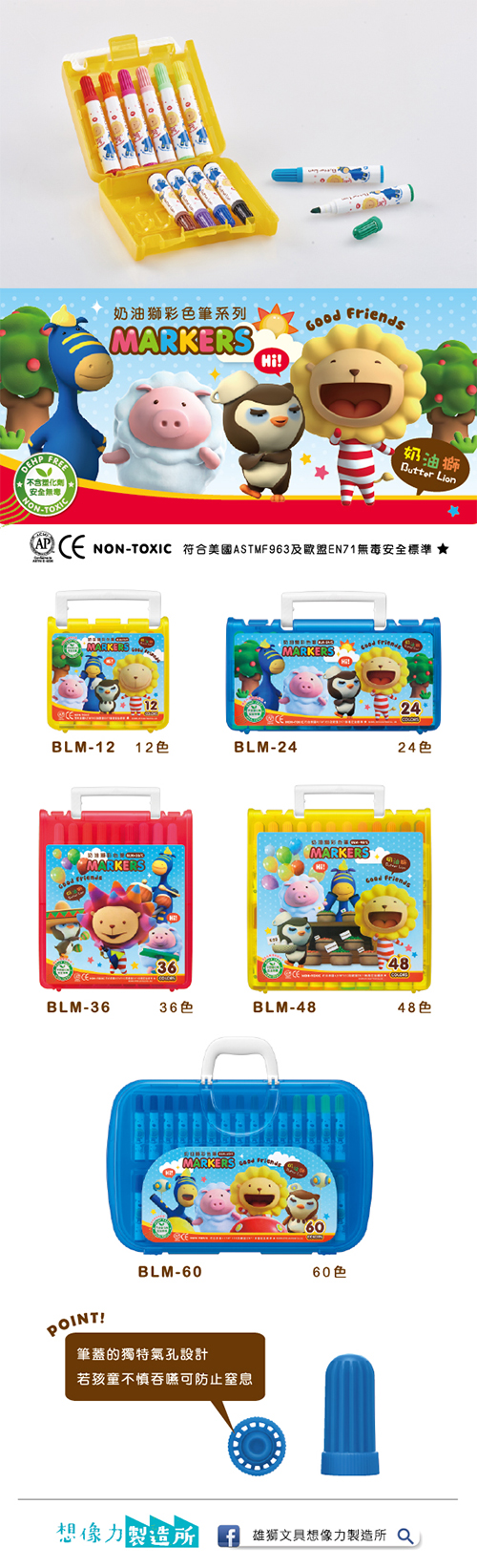 | 產品說明 : | 超卡哇伊奶油獅來囉!筆桿上有奶油獅活潑逗趣圖樣,陪伴小朋友揮灑彩色童年,不論才藝班還是學校上美勞課都會用到唷!雄獅文具用心替消費者安全設想,外盒採無銳角安全設計,可收縮手提式把手不佔空間方便攜帶,讓小朋友走到哪畫表格屬性到哪。 |