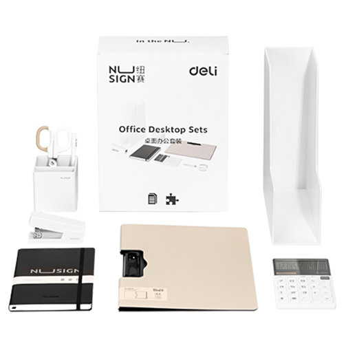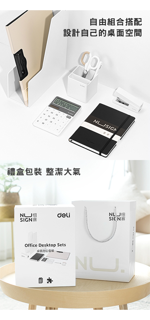 得力Deli NU SIGN桌上文具組/NS005/8件組/白色