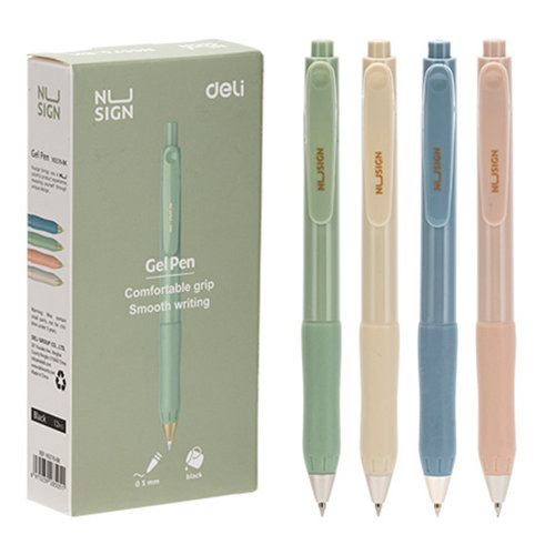 得力Deli NU SIGN按壓中性筆 ENS576-BK 柔色 混桿黑芯 0.5mm X 12支入盒裝