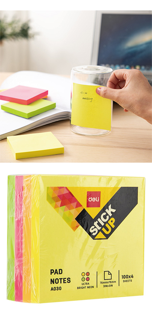 得力Deli亮色便條紙磚/EA03003/3x3/76x76mm/4色x100張