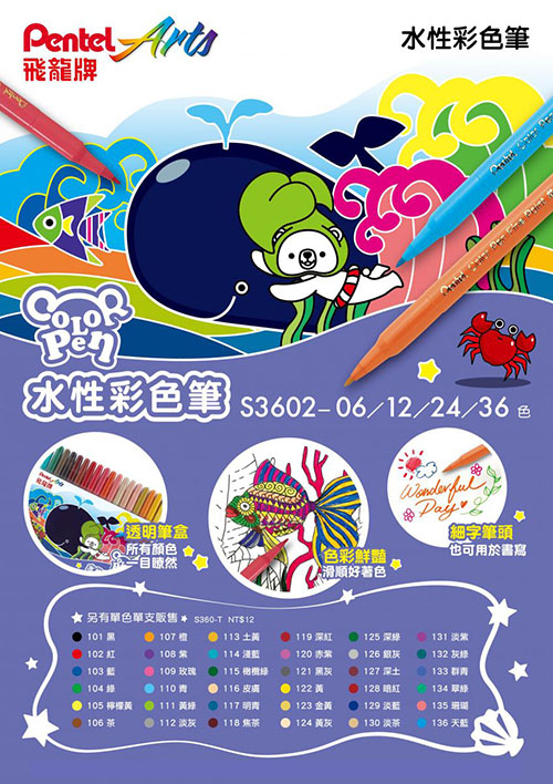 Pentel 飛龍牌 S3602-12 水性彩色筆12色組