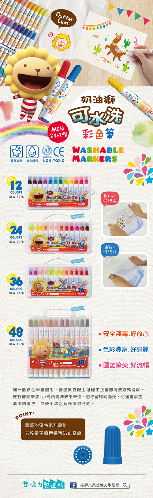 SIMBALION 雄獅 BLW-48/B 奶油獅 可水洗彩色筆 48色