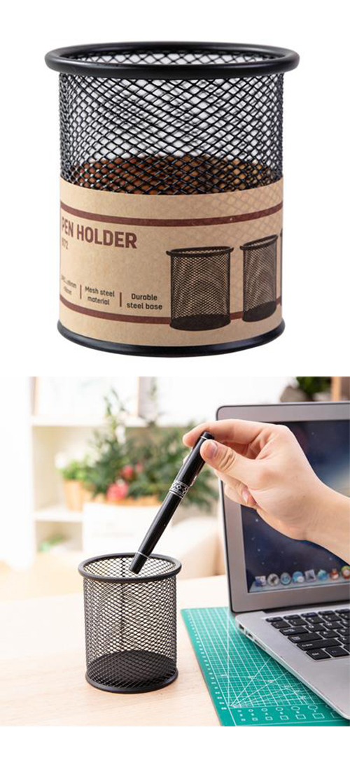 得力Deli網狀圓形筆筒/E9172/黑色/91x98mm