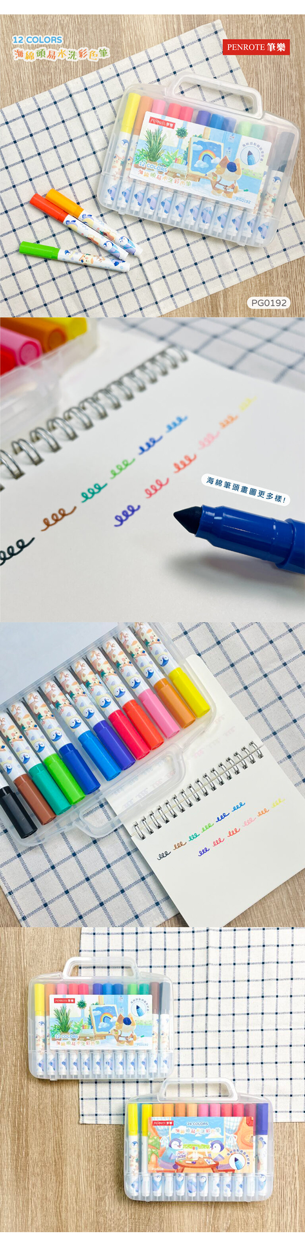 Penrote 筆樂 12色海綿頭易水洗彩色筆 PG0192