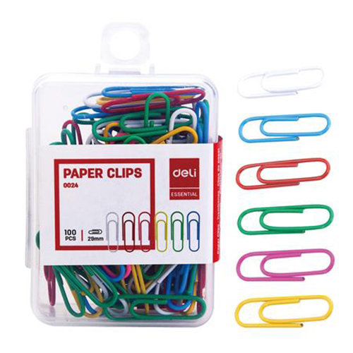 得力Deli彩色迴紋針/E0024/29mm/100支/塑盒