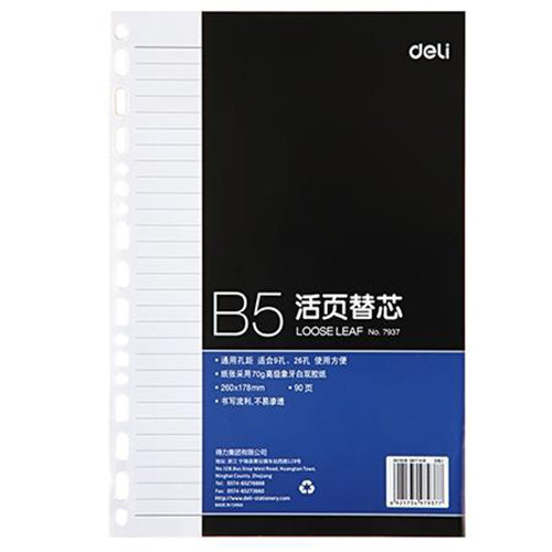 得力Deli活頁紙/7937/橫線內頁/B5/26孔/90張