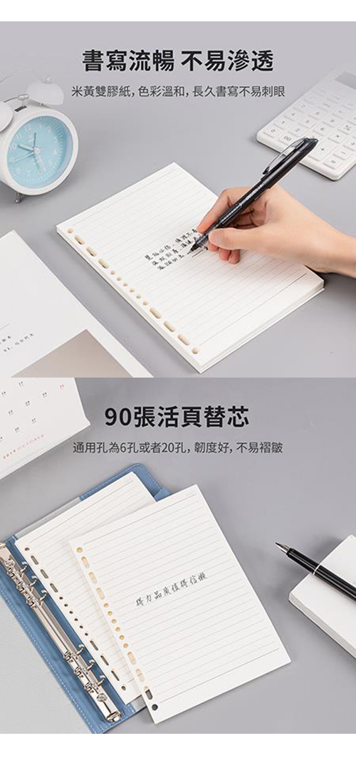得力Deli活頁紙/7938/橫線內頁/A5/20孔/90張
