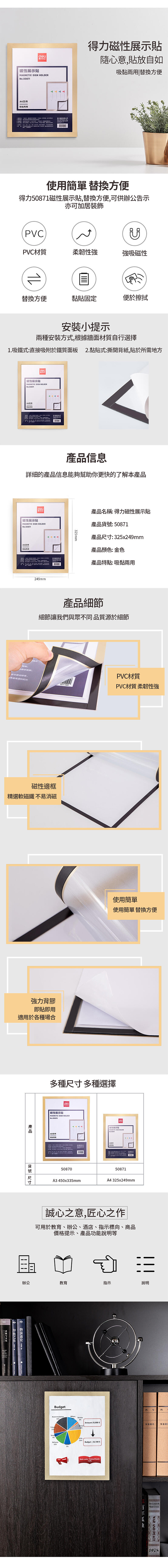 得力Deli A4金框磁掀式展示貼/公佈欄/布告欄 NO.50871
