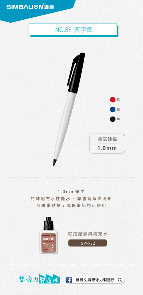 產品特色簽字筆大部份為水性墨水,但它有特殊配方,所以書寫於紙並不會模糊,因而很適合簽字之用,無論重點標示或是筆記書寫均可使用,紅色筆更廣泛用於老師改考卷。產品說明很適合簽字之用,是畫重點或註解的好幫手,亦是老師或同學改考卷的最佳選擇,尤其紅色筆更廣泛共用於老師改考卷之用。