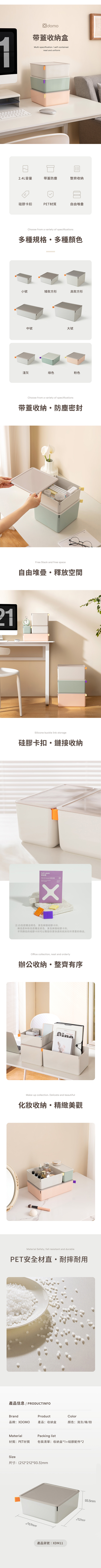 得力Deli XDOMO小收納盒淺灰 212x212x93mm NO.XDM11