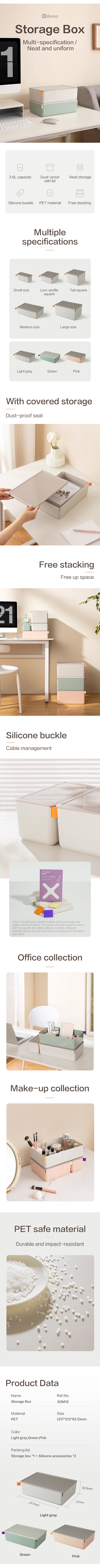 得力Deli XDOMO中收納盒淺灰 317x212x93mm NO.XDM12