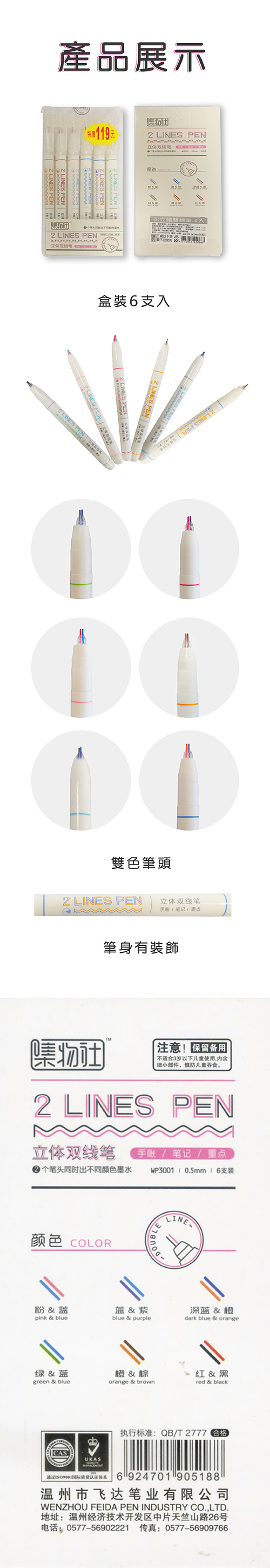 CHYUAN SHYANG 筌翔2200086立體雙線筆特價 6支組