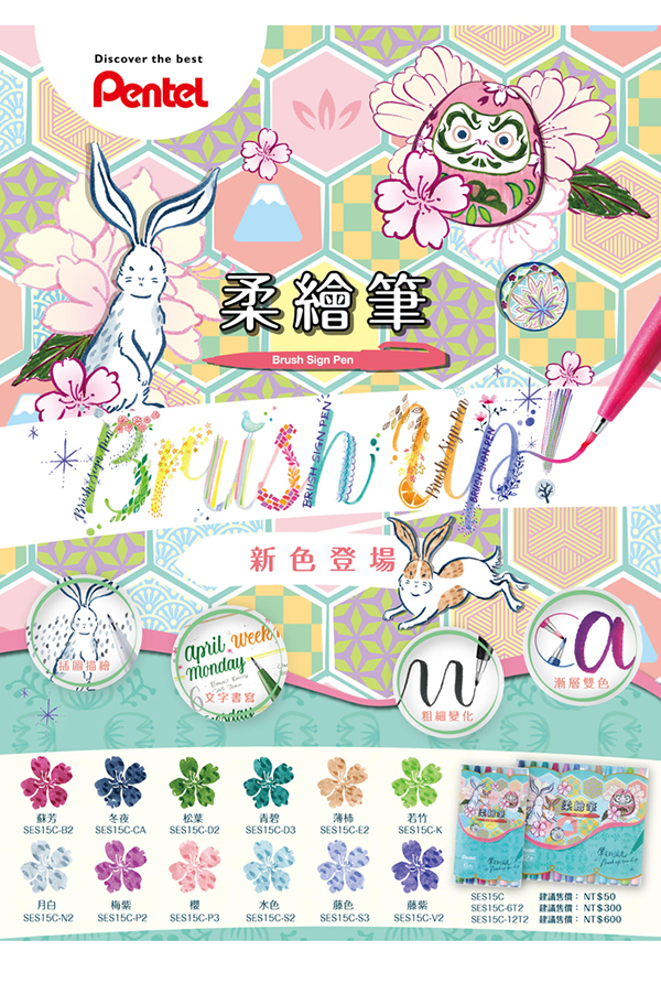 Pentel 飛龍牌 新色柔繪筆/美工筆/彩繪筆 12色組(水性) SES15C-12T2