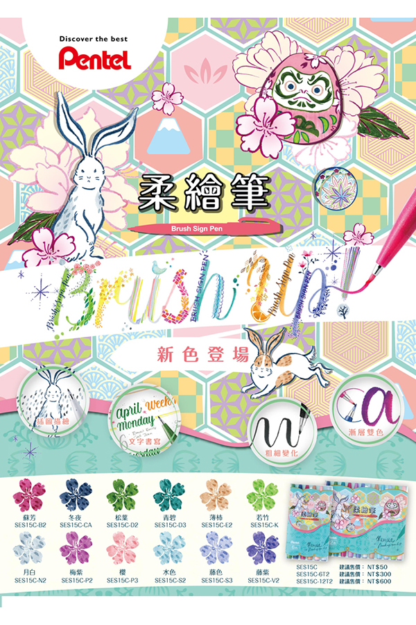 Pentel 飛龍牌 新色柔繪筆/美工筆/彩繪筆 6色組(水性) SES15C-6T2