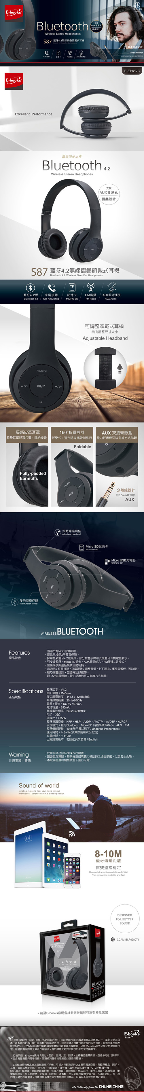 | . | 採用最新藍牙4.2版晶片,部分智慧手機可支援藍牙耳麥電量顯示。 |