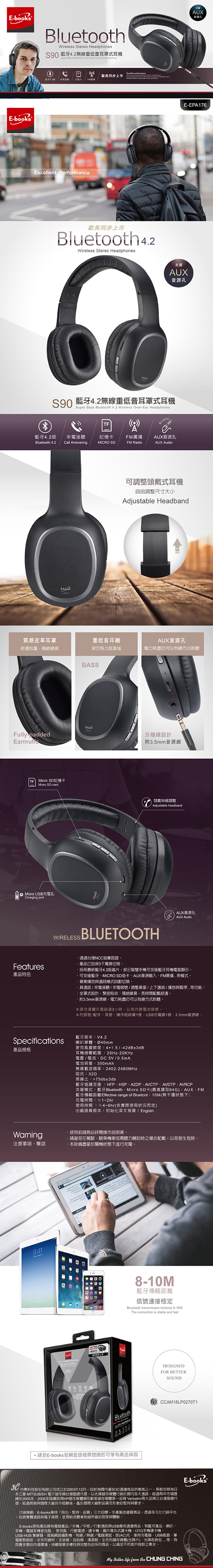 | . | 全罩式設計,服貼、隔絕噪音。 ‧可支援藍牙、MICRO SD插卡、AUX音源輸入、FM廣播..等模式,一機多用。 |