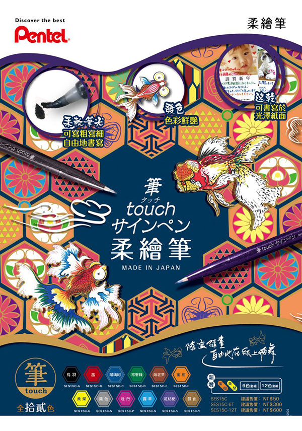 Pentel 飛龍牌 新色柔繪筆/美工筆/彩繪筆 6色組(水性) SES15C-6T