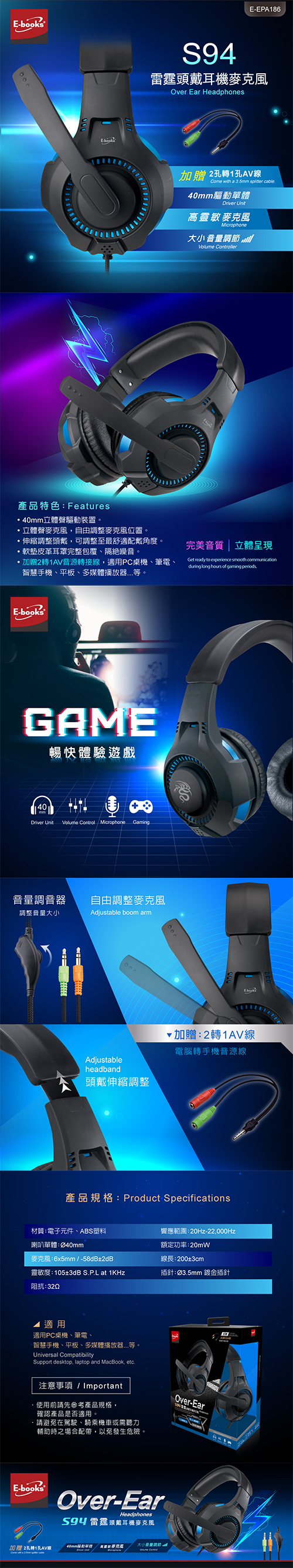 ‧ 加贈2轉1AV音源轉接線,適用各類PC桌機、筆電、 智慧手機、平板電腦、多媒體播放器...等。