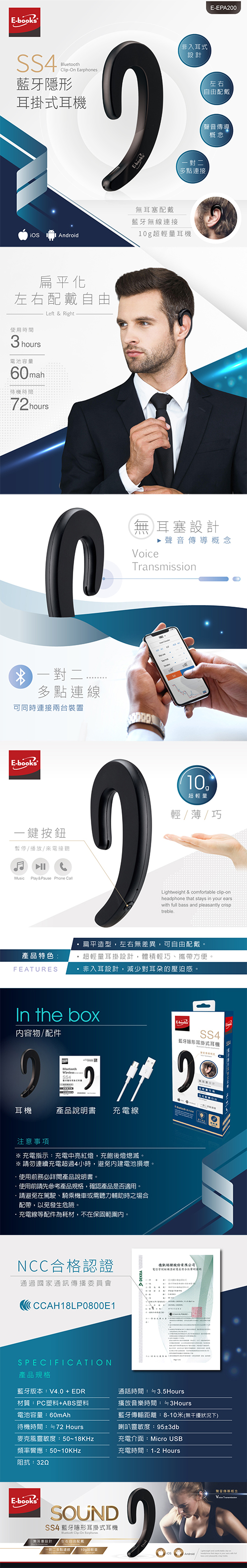 ‧ 超輕量耳掛設計,體積輕巧、攜帶方便。