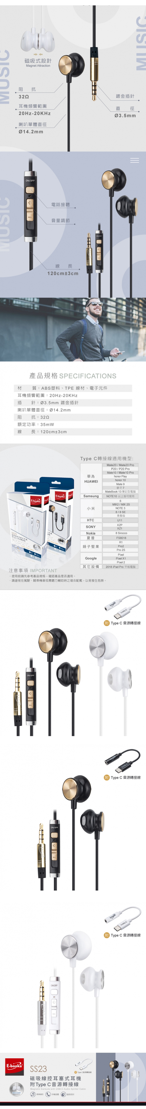 ‧磁吸式設計,不使用時可互相吸附防止脫落。‧內建接聽鍵 / 附音量調節器 / 隱藏式麥克風。‧適用單插孔筆電、智慧手機、平板、MP3…等。‧支援Android/iOS系統之智慧手機麥克風接聽功能 (iphone 7 以上需搭配轉接線)。加贈Type C轉接線