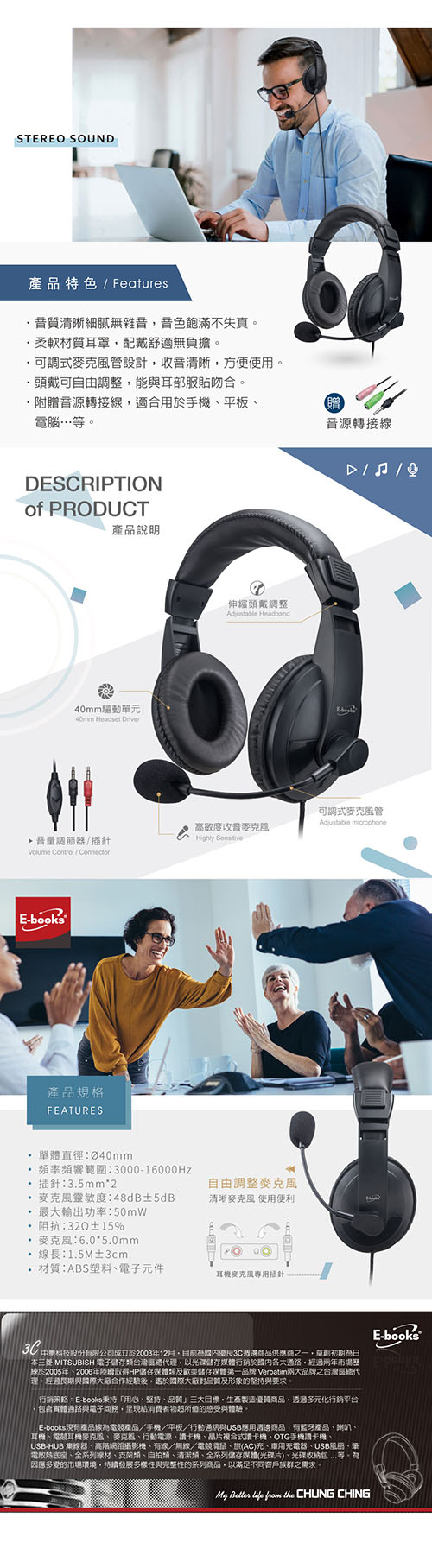 ‧ 附贈音源轉接線,適合用於手機、平板、電腦…等。