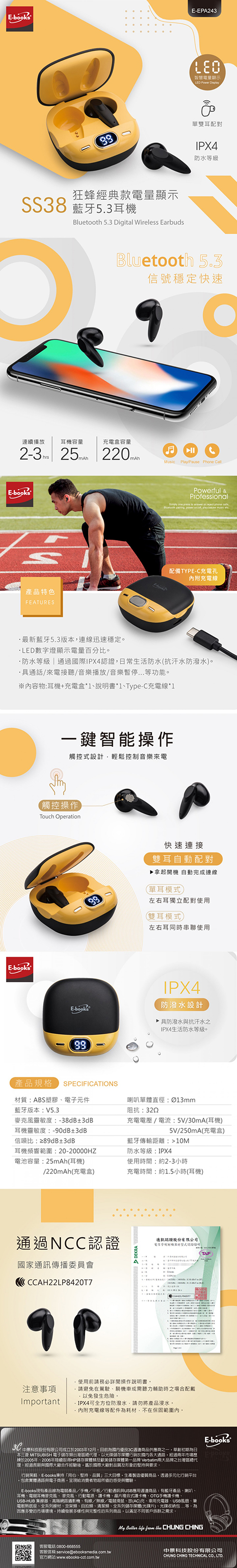 電池容量:25mAh(耳機)/ 220mAh(充電盒)