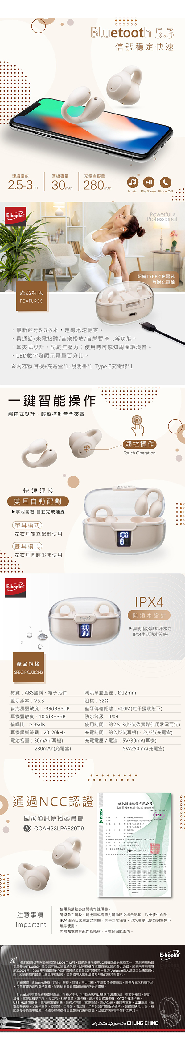 ※內容物:耳機+充電盒*1、說明書*1、Type C充電線*1